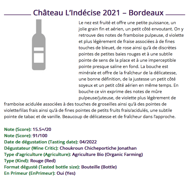 Since our very first vintage (2021) our wines have been tasted and rated by french and international critics. We are proud to show that all our cuvées may be ranked in the most valuable wines.